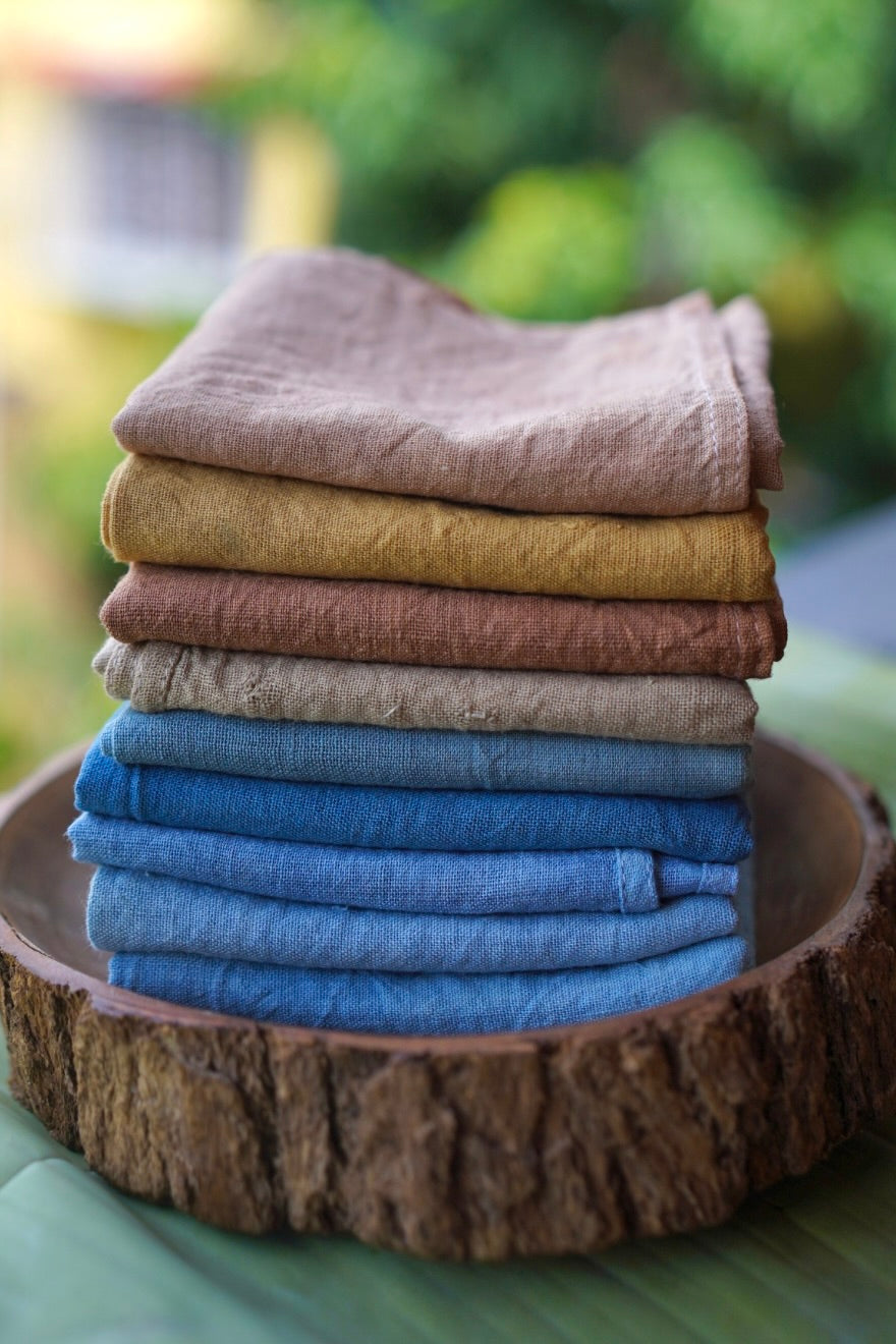 Naturally Dyed Indigo Handkerchiefs with designs 33 counts Indigenous Cotton set of 6