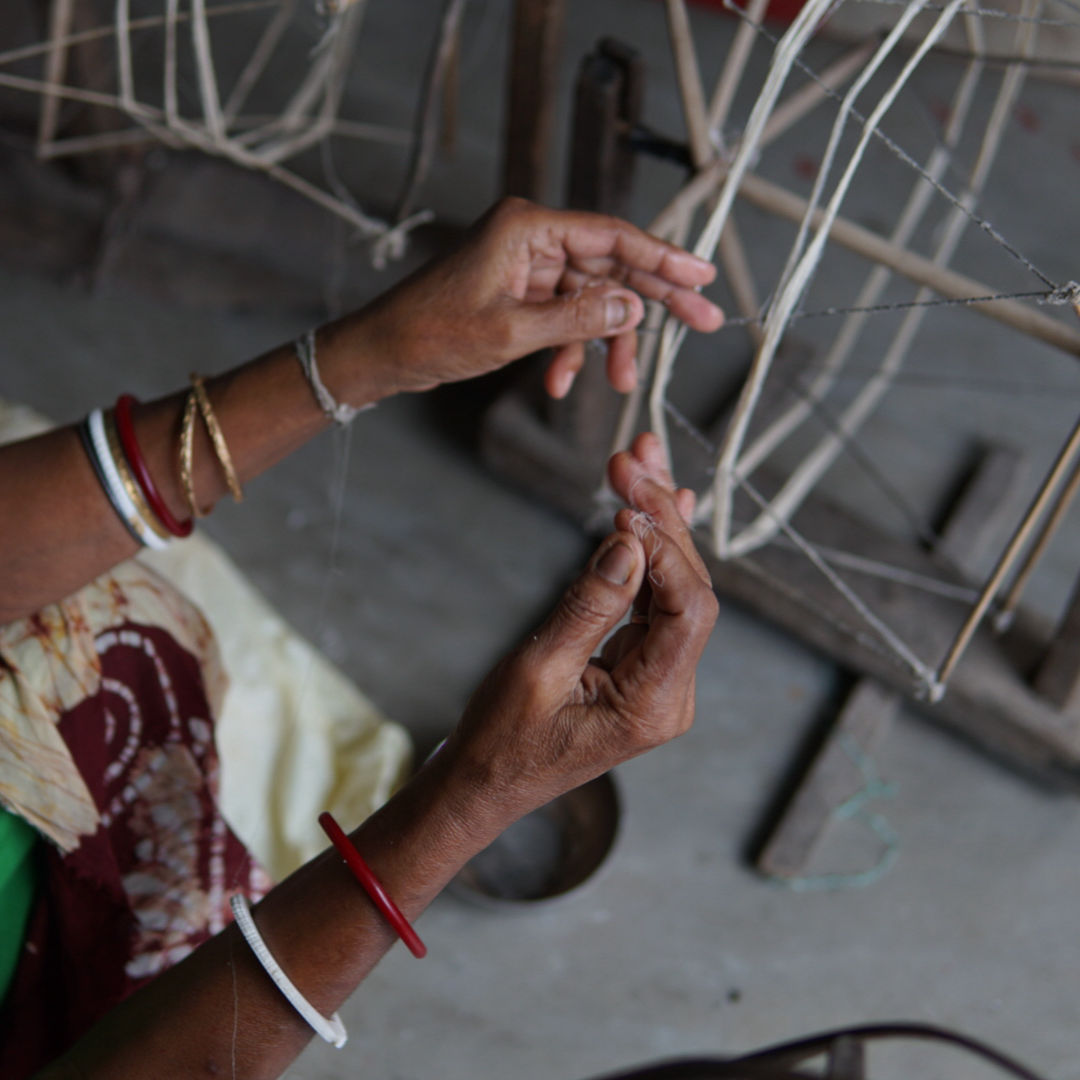 Most people recognize weaving as the art of creating fabric or cloth, but what many may not know is that an essential step precedes it — spinning. Spinning is the transformative process of converting natural fibers like cotton, silk, or wool into yarn, which then becomes the foundation for weaving. In today’s world, spinning is typically done by high-speed machines to meet mass production demands. However, at Abrawan, we honor a different philosophy. We embrace the slow, meditative process of hand spinning, using minimal or no machinery. This traditional approach not only preserves the authenticity of the craft but also celebrates the human touch in every strand of yarn we create. Spinning by hand is a meticulous and time-consuming art. It involves drawing out fibers and twisting them into a continuous thread, which is then gathered and spun into yarn. This yarn is the essential ingredient for weaving, where it is interlaced to form cloth. While weaving can be done both by hand (on handlooms) and by machines (on power looms), Abrawan takes pride in sticking to handwoven methods. Our artisans pour patience, skill, and heritage into each piece, ensuring that the final product is not only beautiful but also ethically and sustainably made.
