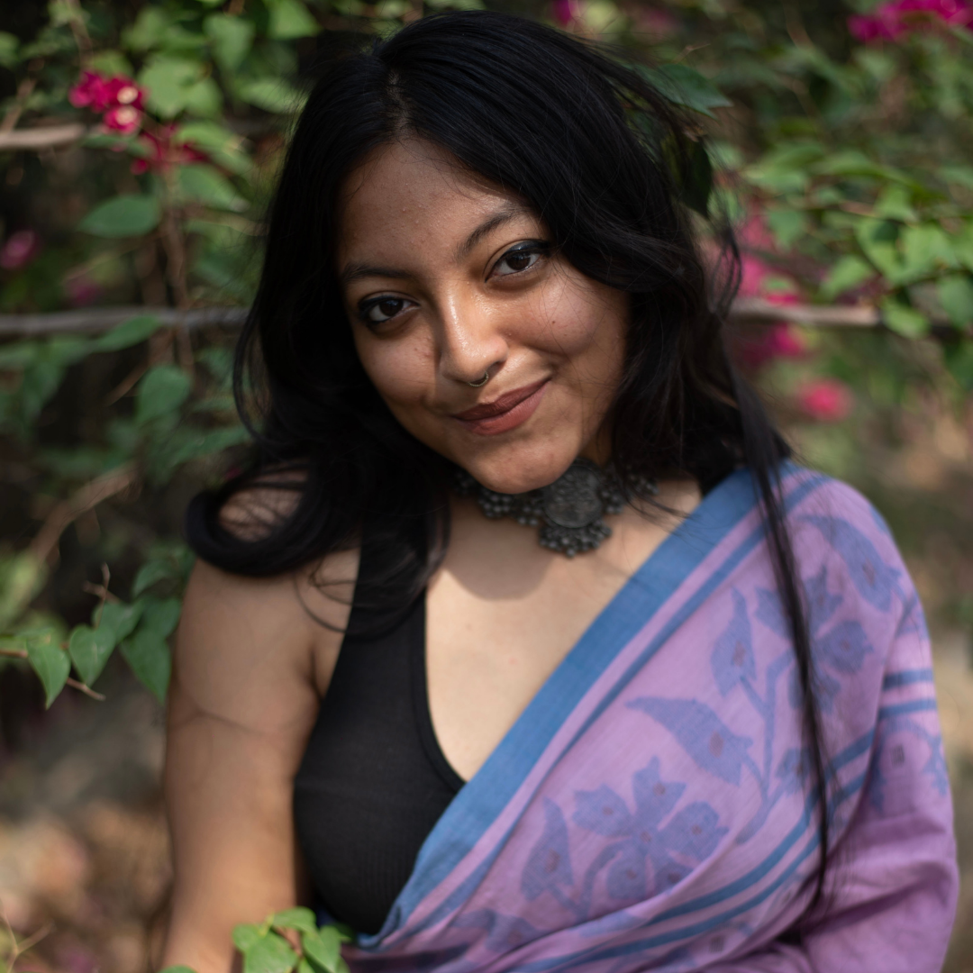 Prerona Das Roy, Our founder of Abrawan, which is dedicated to reviving and promoting Bengal Muslin and other traditional handmade fabrics of India. Her passion for hand spinning and hand weaving began at an early age, deeply influenced by her mother, a Hand Spinning activist. Prerona strongly believes that hand spinning is crucial for sustainable living and that the intricate art of weaving the finest counts of muslin is something machines can never replicate. Through her extensive travels across India, she has gained deep insights into the country’s rich reservoir of art, culture, and craftsmanship. She envisions digitalization as a powerful tool to bridge the gap between the makers and buyers, fostering transparency and connection within the ecosystem.